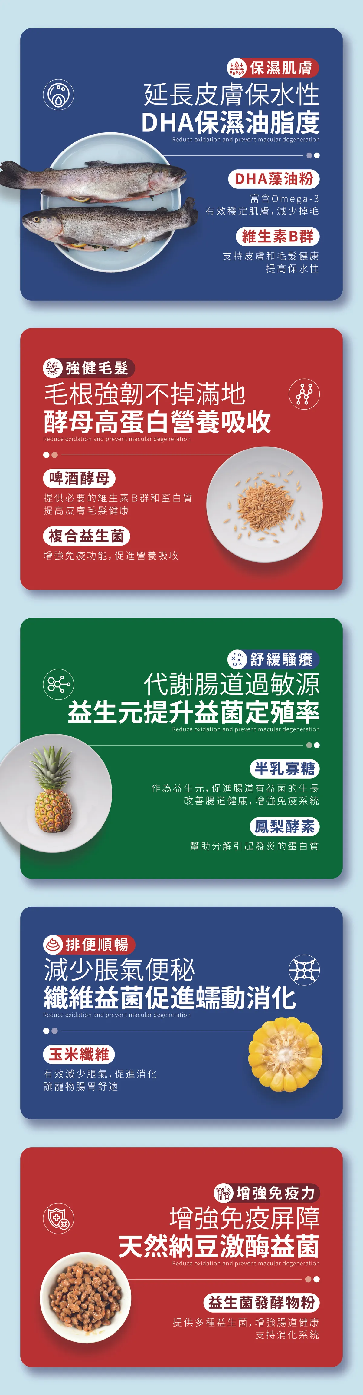 【功效】腸道菌叢平衡、維持消化道機能、增強營養吸收、強化毛髮生長、維持亮澤毛髮、修復肌膚發炎