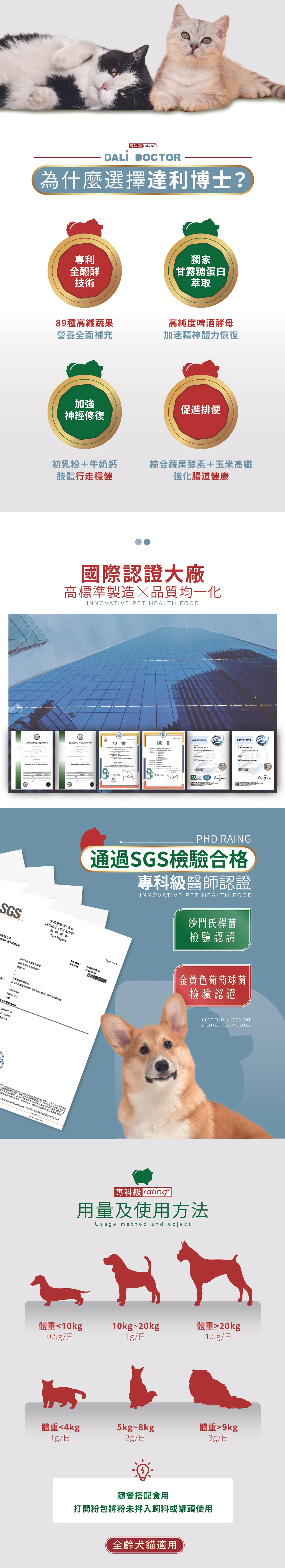 b.貓:小於<5kg,0.5g/日;5~10kg,1g/日;大於>10kg,1.5g/日