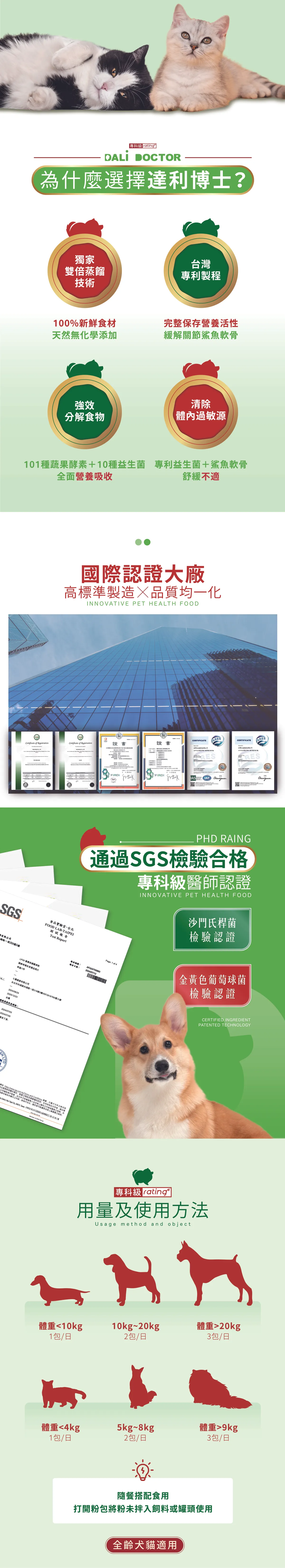 a.犬:小於<5kg,1包/餐;5-10kg,2包/餐;大於>10kg,3包/餐