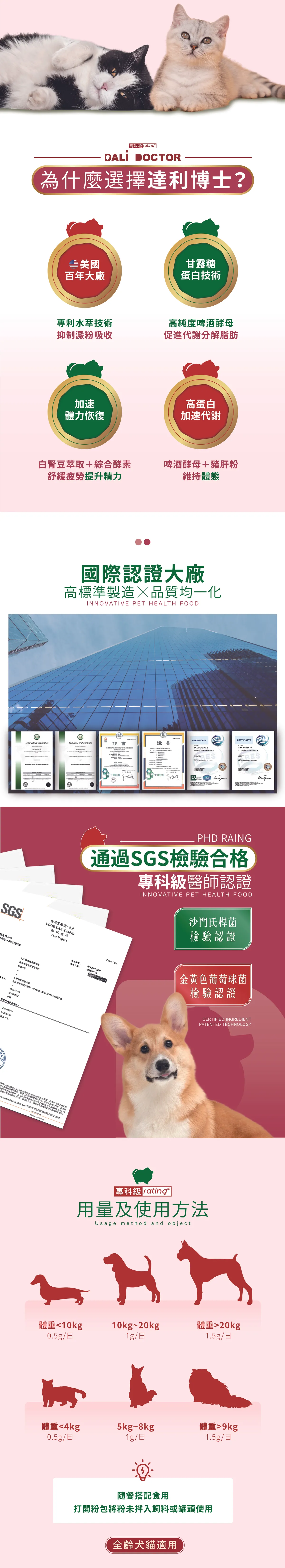 b.貓:小於<5kg,0.5g/日;5~10kg,1g/日;大於>10kg,1.5g/日