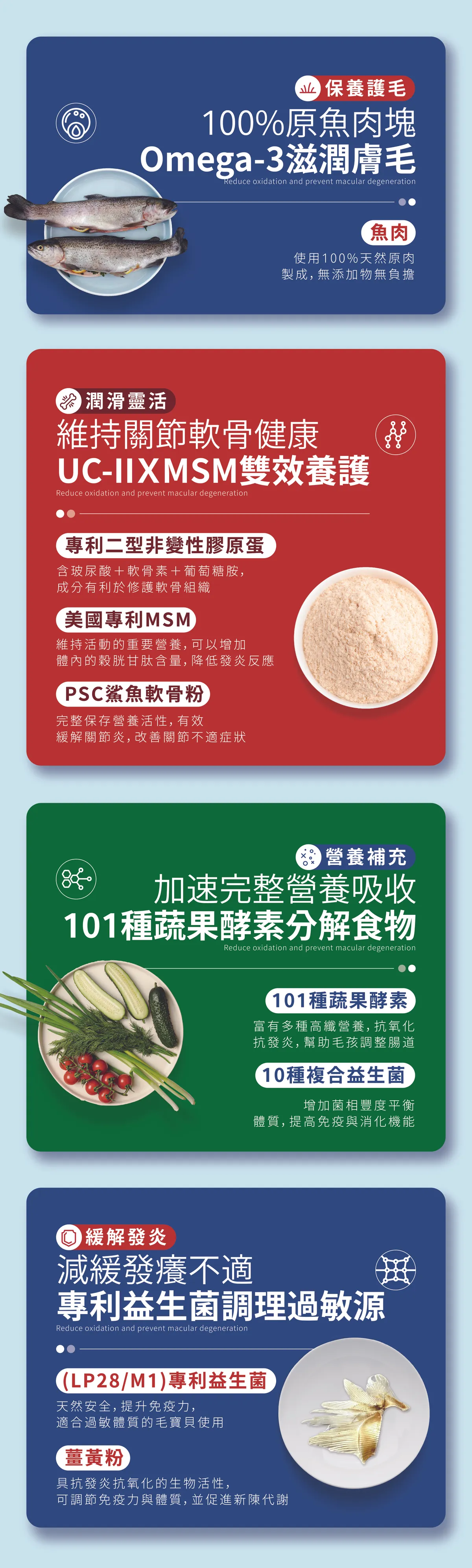 【功效】腸道調理、維持活力、降低敏感、關節養護、膚毛保養、增強免疫力