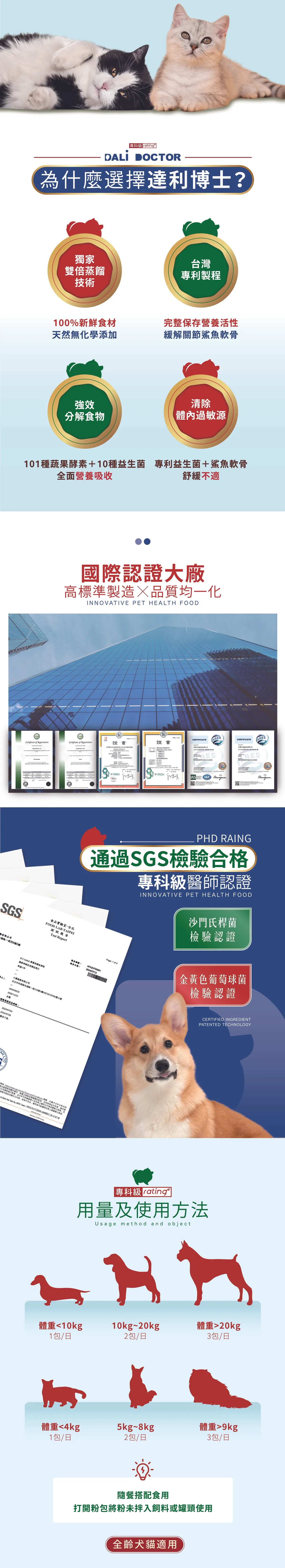 a.犬:小於<5kg,1包/餐;5-10kg,2包/餐;大於>10kg,3包/餐